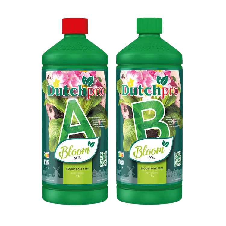 Das Dutchpro Bloom Base Feed Set A & B ist ein speziell entwickeltes Komplettdüngersystem für die Blütephase. Die getrennten A- und B-Komponenten liefern alle wichtigen Makro- und Mikronährstoffe, die Pflanzen für üppige Blüten, kräftige Stängel und hohe Erträge benötigen.